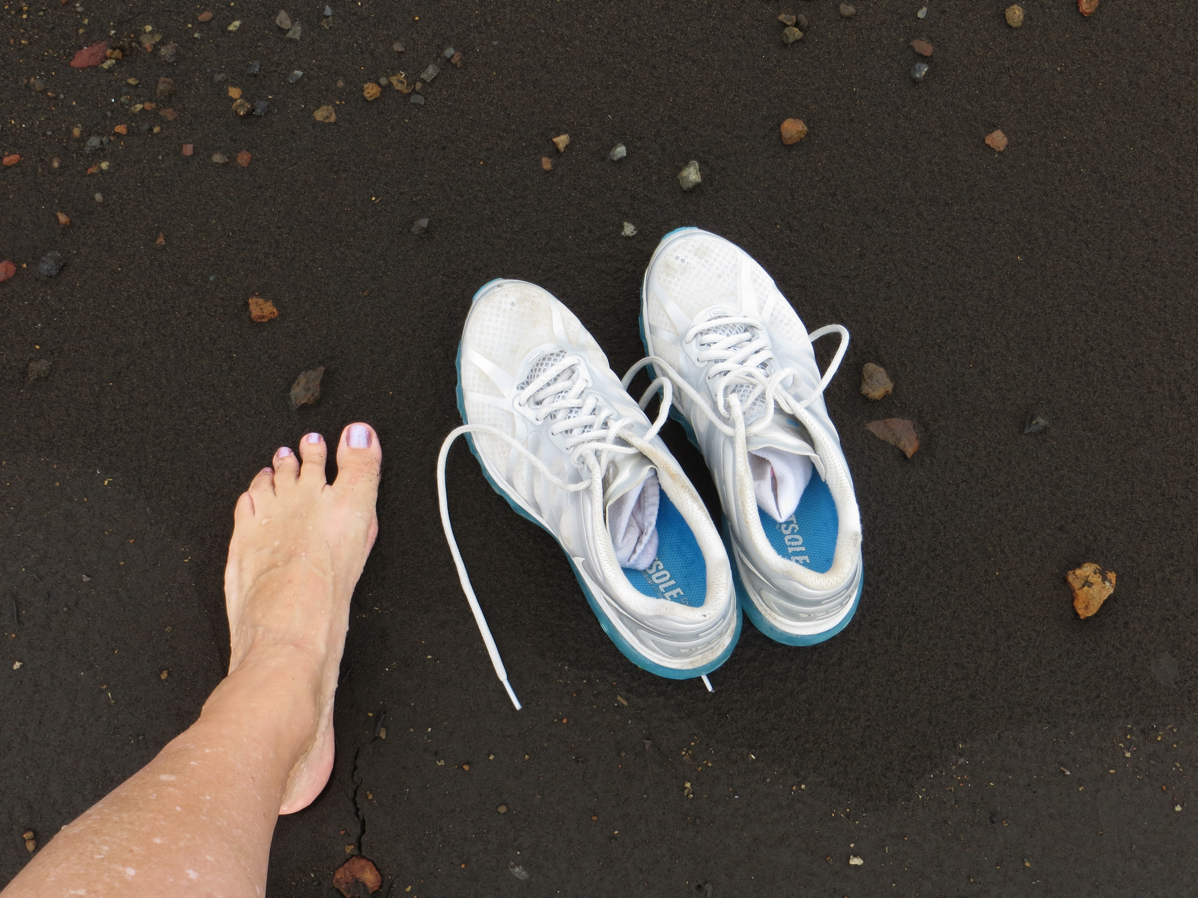 High above us, the summit of Tavurvur continued to belch light gray ash. We ascended higher, drawn like Frodo and Sam to the top of Mt. Doom. Soon though, my legs told me it was time to turn around. Much to the chagrin of the men, we began our descent back down to the beach. I stopped often to assess the path in front of me, more treacherous now – the rocks were wet and slick.
