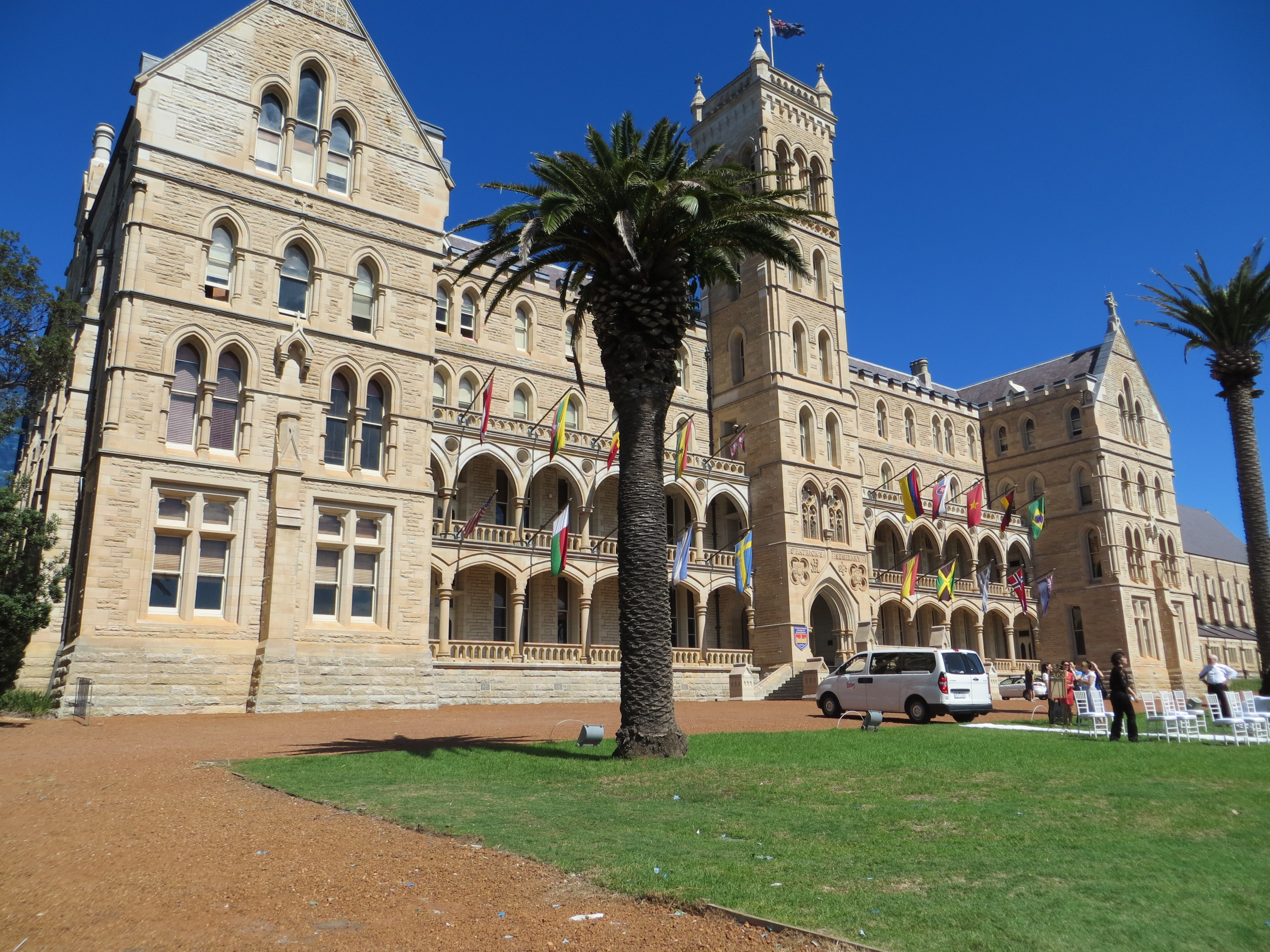 Our new ferryboat friend drew our attention to a tall stone tower on the hill to our right as we entered Manly Cove that morning. She said, “That’s where The Great Gatsby was filmed”. This definitely piqued our interest. Certain members of my family are huge Baz Luhrmann fans (especially our media production spring breaker). It’s a love that began with Strictly Ballroom, one of the funniest movies I’ve ever seen. If you love dancing shows (and Australian accents) then I highly recommend it. You’ll be in stitches. The love continued with Romeo and Juliet, Moulin Rouge, Australia and finally The Great Gatsby. So, we didn’t want to miss an opportunity to see the place that was transformed into Gatsby’s expansive and fabulous Long Island estate. Formerly St. Patrick’s Seminary, it now houses the International School of Management. We hiked from the beach up Darley Road to find the seminary at the top of the hill overlooking Manly Beach to the east and Manly Cove to the west. It was fun imagining how they recreated Gatsby’s opulent jazz age parties that spilled out the entrance, onto the lawn and around those fabulous fountains. The seminary is a popular site for weddings and the immaculate grounds include a beautiful chapel. I later learned it was the wedding venue for Nicole Kidman and Keith Urban. All was well; we had our photos and our celebrity fix.